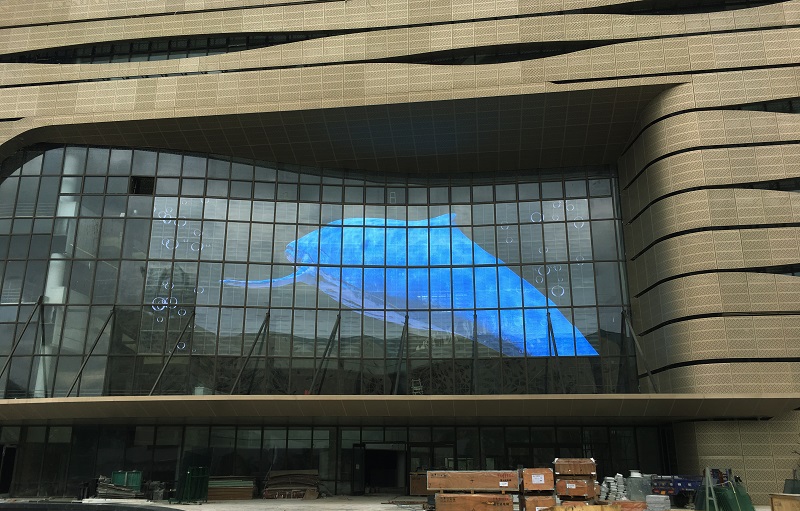 據了解,本次項目運用迷你P16系列透明屏,迷你透明屏融合了輕、薄、透的結構設計理念,顛覆了傳統顯示屏復雜的鋼架結構。它能夠針對不同的環境使用要求,不破壞建筑原結構,呈現出不同的形狀,與劇院現場的玻璃幕墻完美融合,無縫拼接,且屏體背部無任何結構,玻璃幕墻無需承重,安全系數極高。其通透的特性,不影響日常采光,隱形顯示,全方面觀看無死角,亮度可調節,流光溢彩的顯示畫面結合音樂營造了一種氣勢恢宏,具有現代科技感的震撼場面,賦予劇院建筑玻璃的靈動生氣,為劇院增添了一道亮麗的風景線。