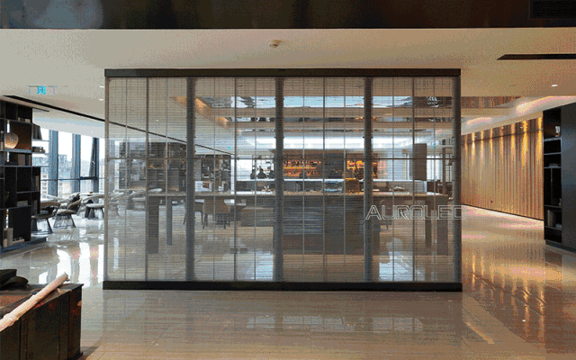 雖然在很多人的印象中,透明屏就是單純的玻璃顯示屏,其使用離不開玻璃,但事實并非如此,透明屏不僅可以用在玻璃上,在純室內(nèi)環(huán)境透明屏也可單獨應(yīng)用。隨著透明顯示技術(shù)的不斷發(fā)展及時尚元素的融入,透明屏的應(yīng)用領(lǐng)域得到進(jìn)一步擴(kuò)展,例如成都世豪廣場透明屏的這次室內(nèi)隔斷運用。