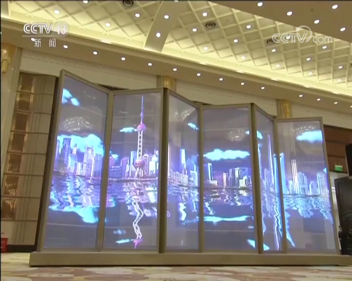 近日中央一臺專鏡頭播放led貼膜屏風屏。在中國國際進口博覽會歡迎宴會會場內,一排富有高科技感的透明顯示屏風吸引了來自各國貴賓的目光。