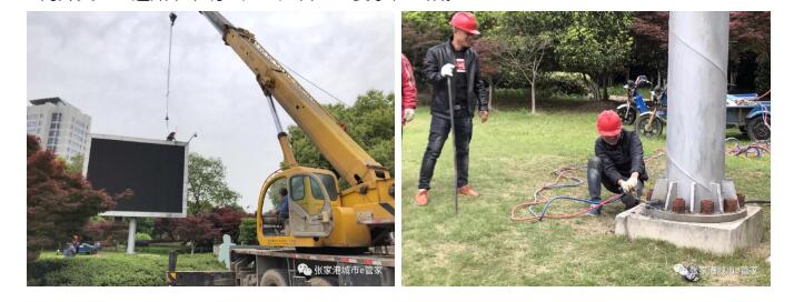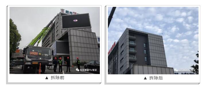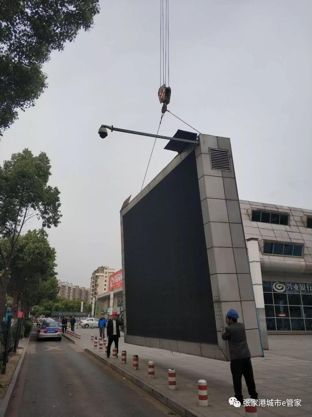 5月6日上午,人社局與城北中隊(duì)共同將該大型戶外電子顯示屏安全拆除。