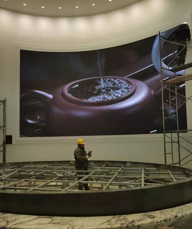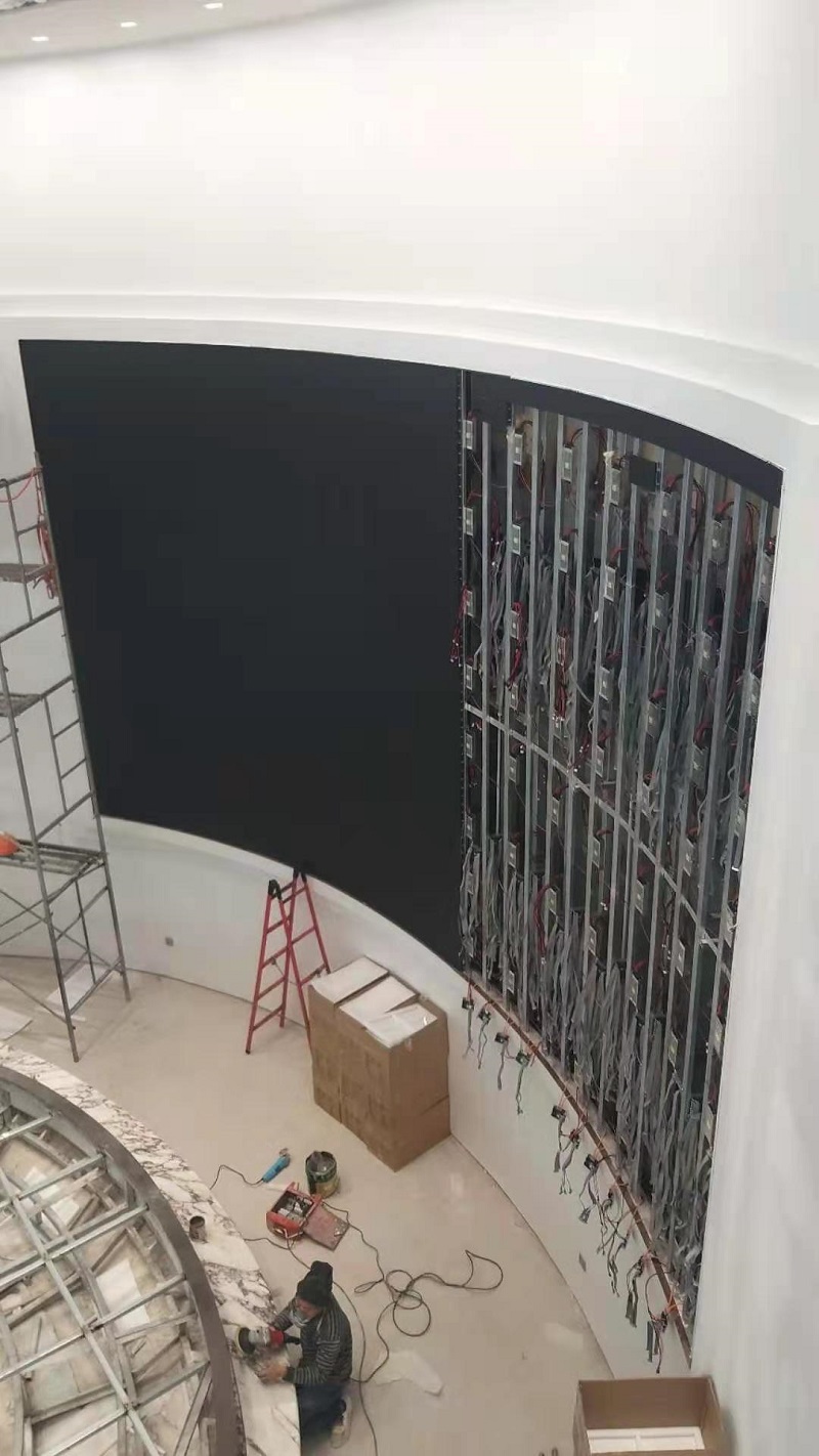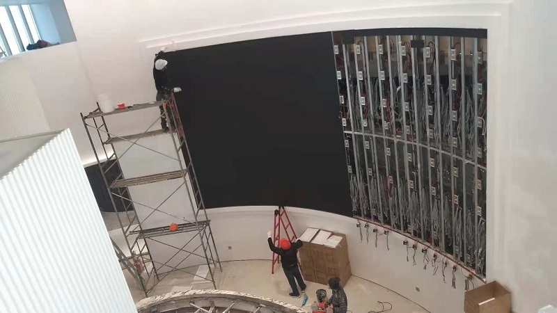 小間距led顯示屏合計(jì)45㎡,分辨率高達(dá)3840*2160標(biāo)準(zhǔn)4K顯示,我們來(lái)看一下施工現(xiàn)場(chǎng)吧!