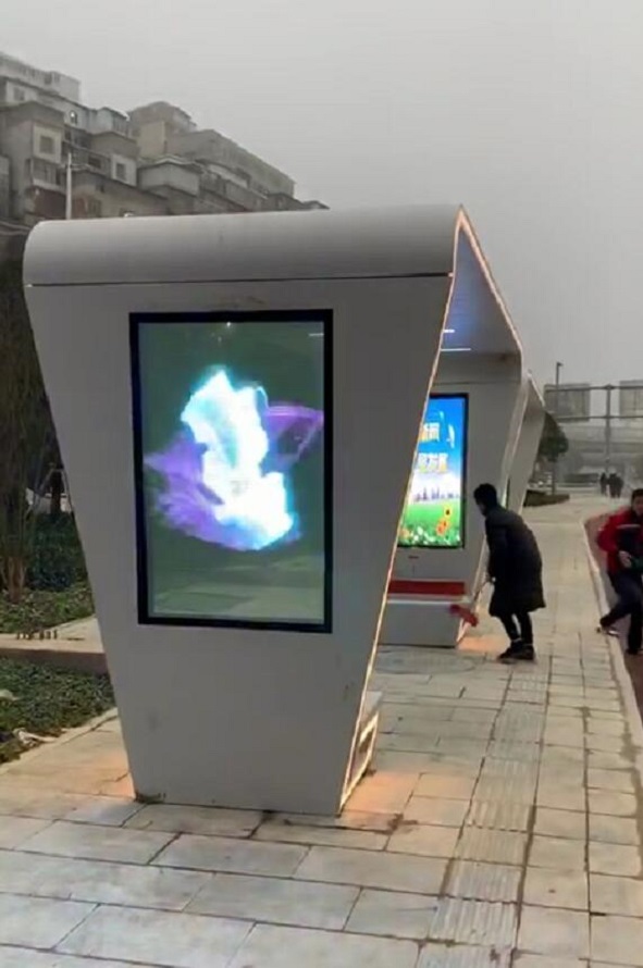 貴陽人民大道10個公交站無框透明led屏完美點(diǎn)亮!